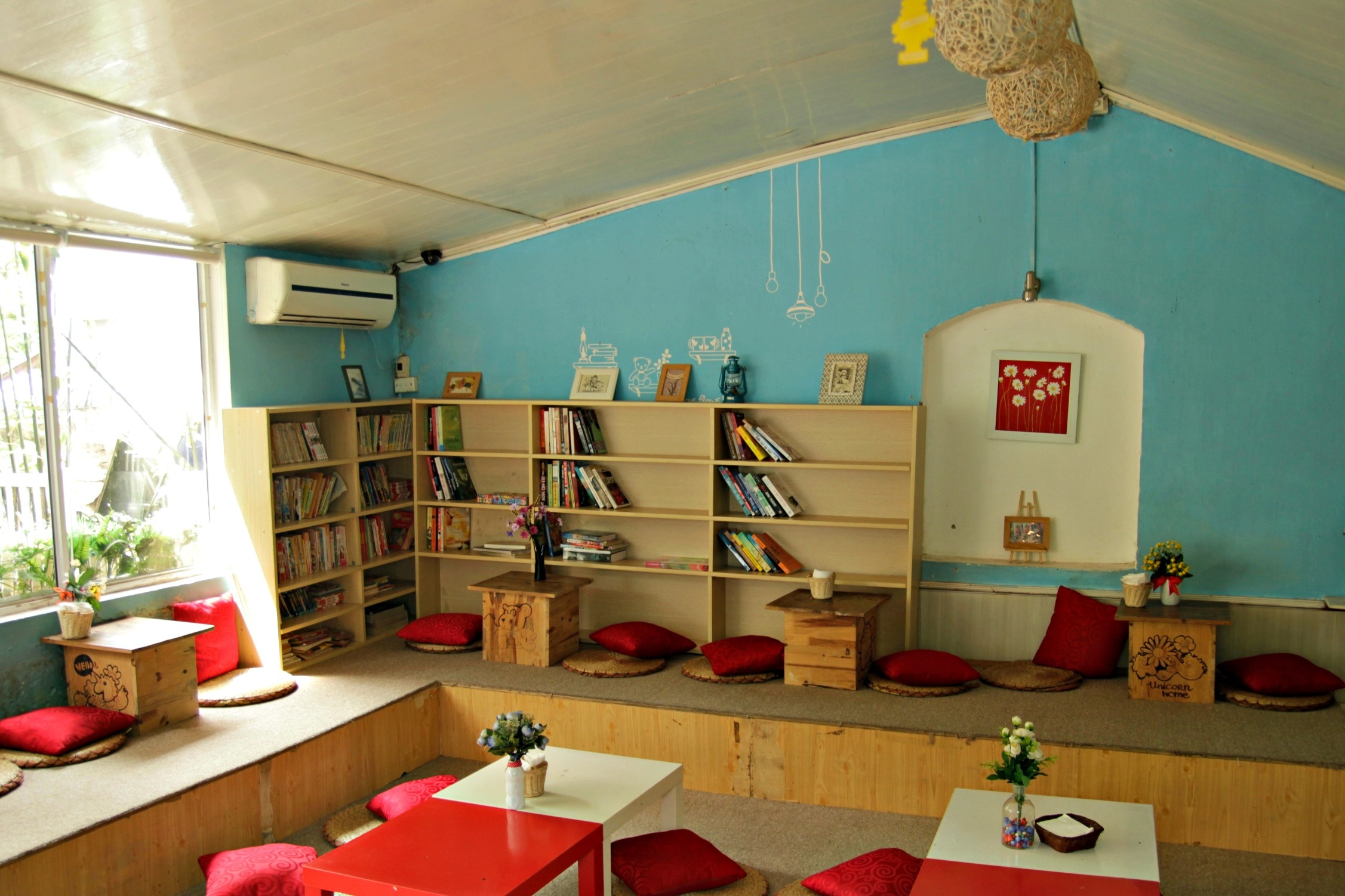 | Tầng một của Unicorn's Home với những chiếc bàn ghế được đặt làm riêng. |