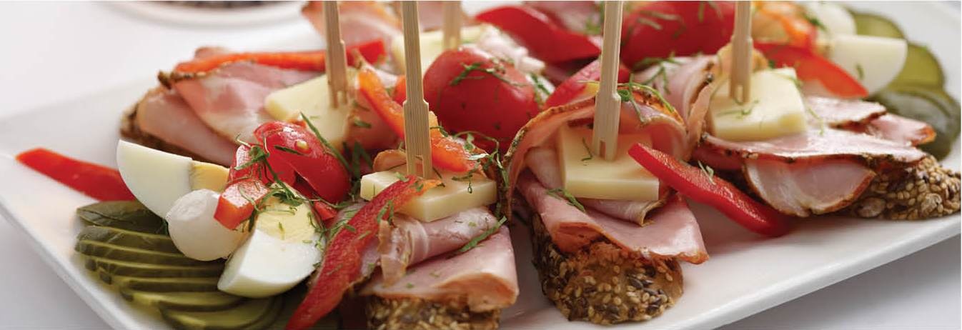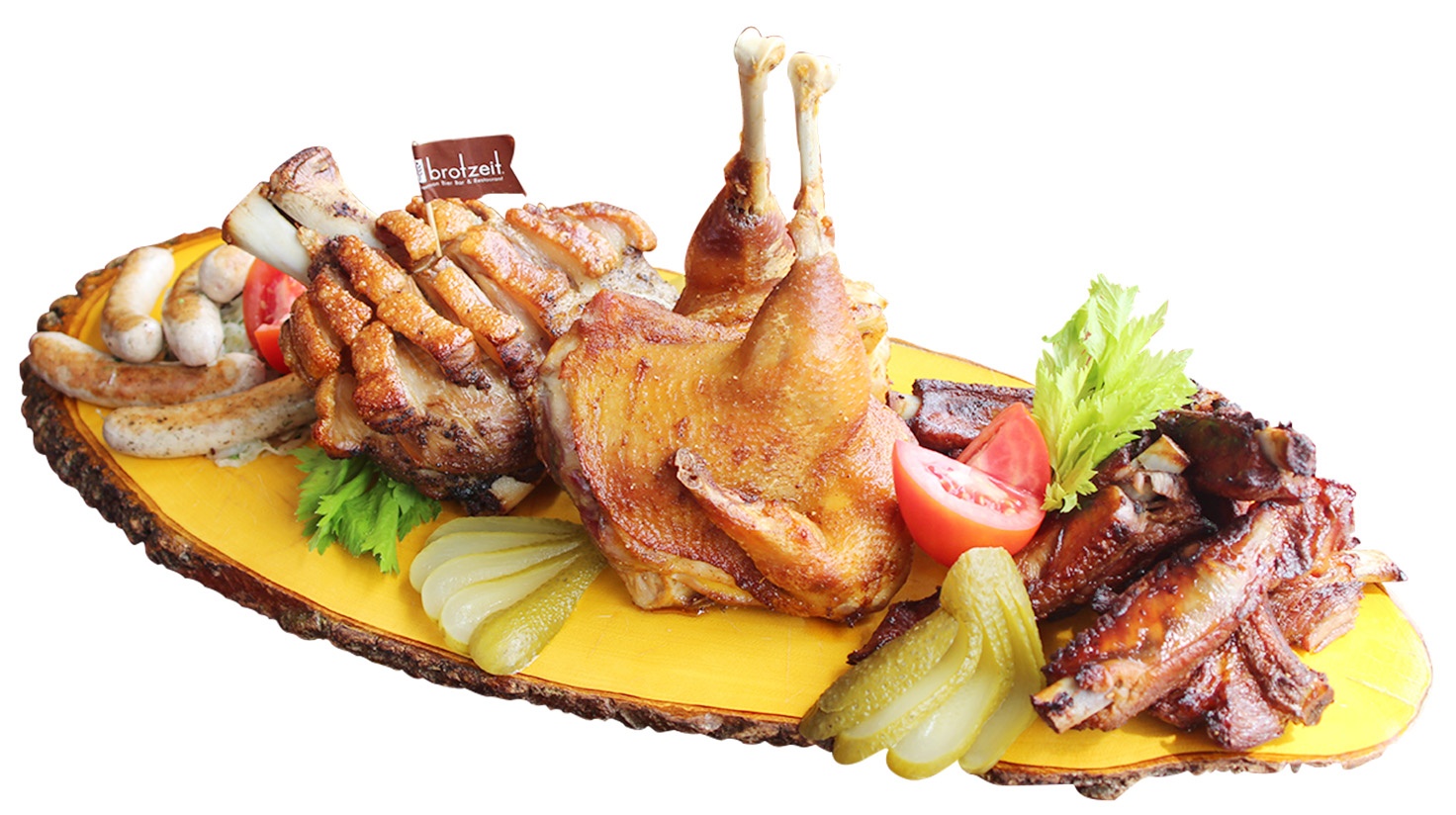 Món khai vị đặc biệt Brozeit được chế biến từ thịt dăm bông đùi heo, thịt ba chỉ xông khói, phô mai Thụy Sĩ, ớt chuông đỏ, trứng luộc, dưa chua, hành tây ướp gia vị và cà chua.