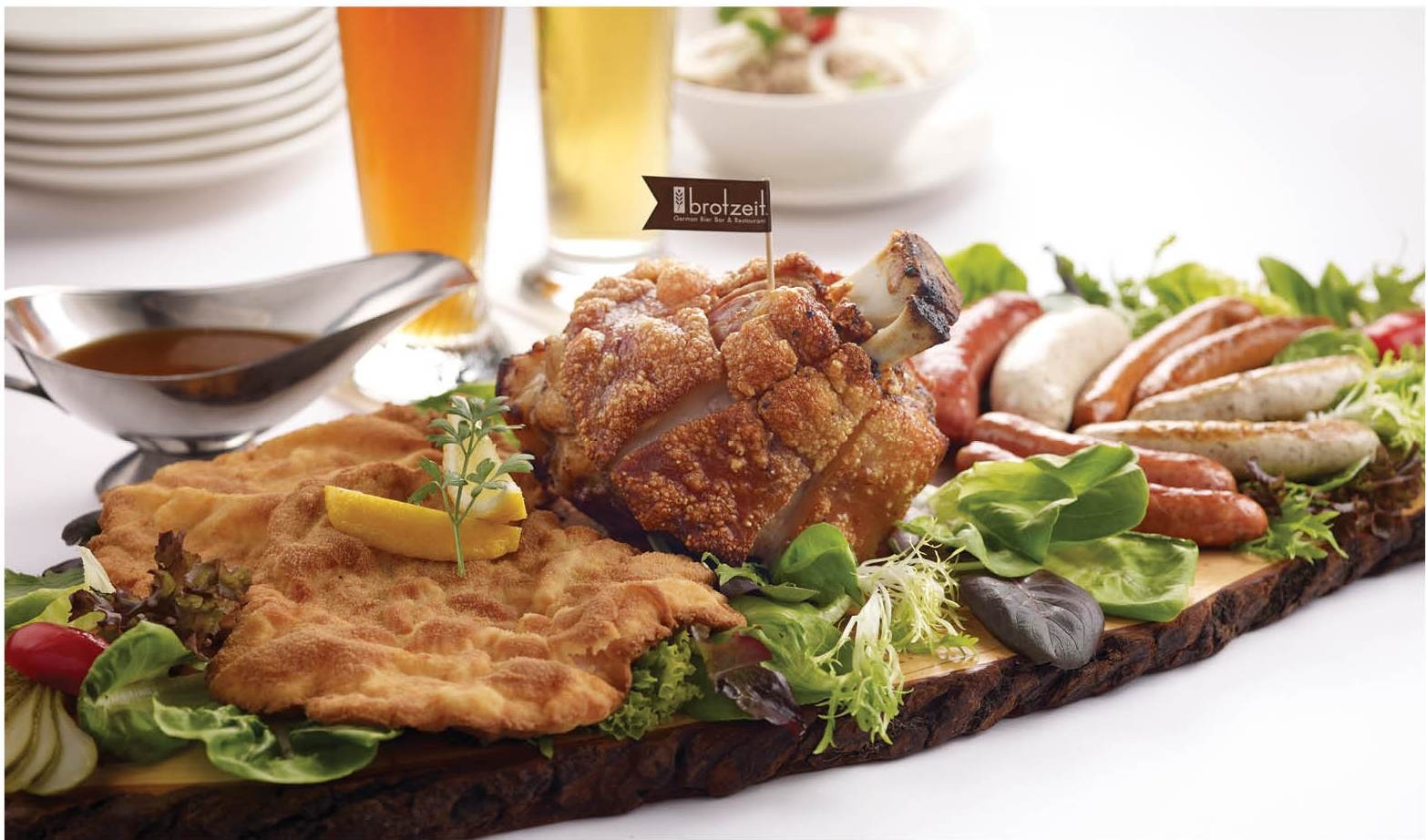 Đặc biệt, cũng vào ngày 4/10, bạn còn có thể thưởng thức phần khay gỗ đặc biệt Oktoberfest Platter cho 4-6 người ăn, gồm nhiều món đặc sắc như sườn heo nướng mật ong, gà quay, xúc xích heo nướng và giò heo quay giòn dùng kèm dưa bao tử muối.
