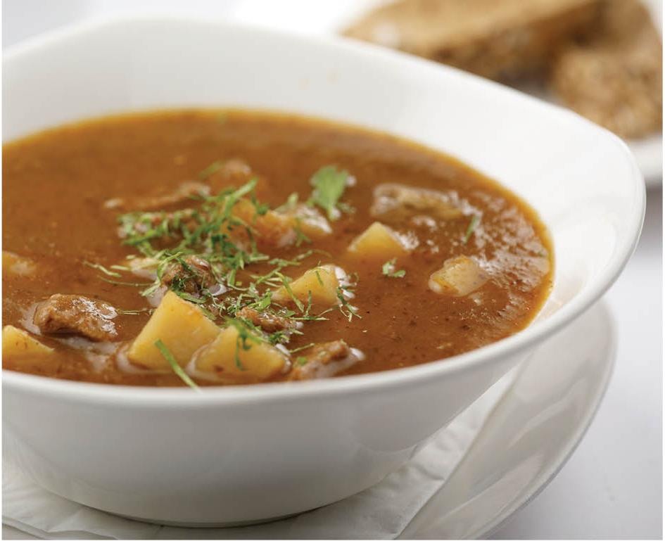 Súp ragu bò mang lại vị ngọt của rau quả quyện với thịt bò.