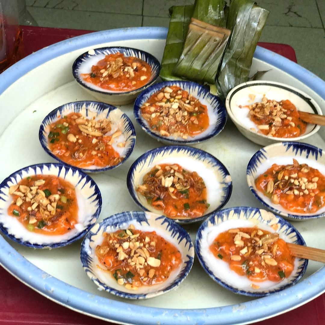 Những món bánh mặn ở miền Trung như bánh bèo, bánh bột lọc nhân tôm thịt, bánh nậm, bánh ít trần... cuốn hút không ít người. Tại chợ Bà Hoa, bạn có thể tìm thưởng thức những món bánh này. Ảnh: Tedphung. |