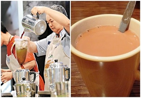 Sau khi pha đậm hơn, lá trà trong trà sữa để lâu sẽ bị đắn nên họ đã nghĩ ra cách lấy vợt để lọc lá trà. Pha lâu ngày cái vợt sẽ có màu cà phê sữa giống màu vớ da của phụ nữ nên cuối cùng món thức uống được gọi là trà sữa vớ da. Hầu như, mỗi buổi sáng, người dân Hong Kong đều có thói quen uống trà sữa trứ danh này.