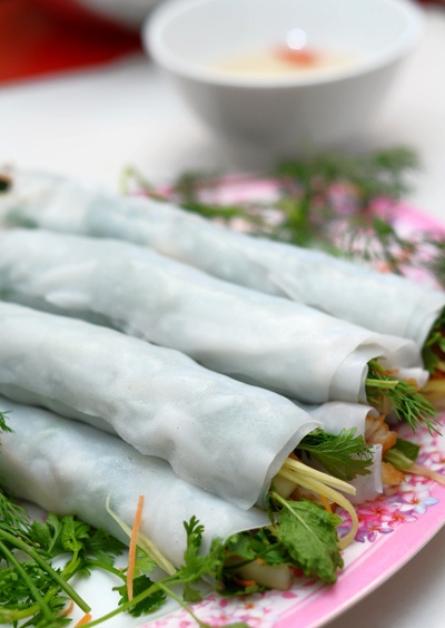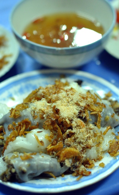 Bánh cuốn nóng - Nghe tên có vẻ nóng hổi nhưng thực ra món ăn không bao giờ làm bạn vật vã đổ mồ hôi. Có vất vả chăng chỉ là khách thường chịu cảnh mong ngóng chờ đợi, bởi bánh cuốn muốn ngon phải vừa mới tráng, khói còn tỏa nghi ngút. Thế nên càng tiệm nổi tiếng đông đúc thì khách càng có dịp thử sức kiên nhẫn.