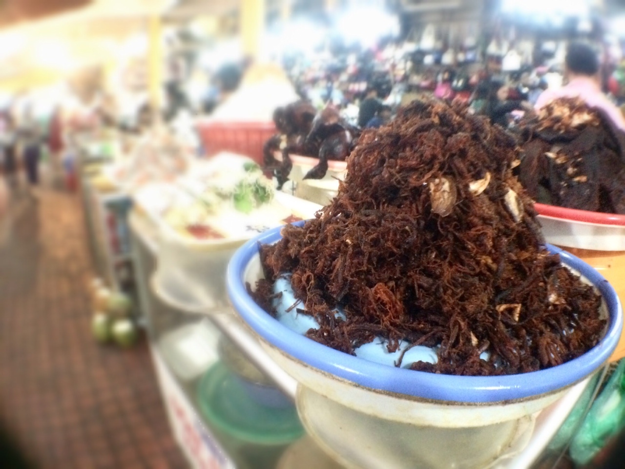 Giống mọi khu chợ Hà thành, các món quà vặt không thể thiếu trong chợ Hôm có nộm bò khô..