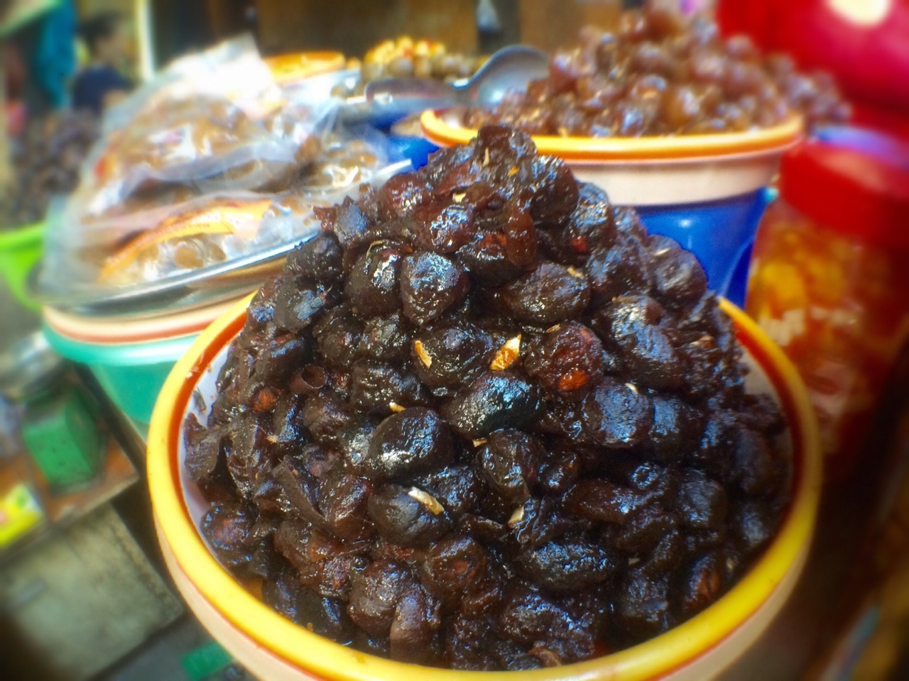 Sấu là đặc sản của mùa hè - thu Hà Nội, nên thời điểm này, chỉ cần dừng xe trước cổng chợ Hôm, bạn dễ phải tứa nước miếng trước các loại sấu dầm, sấu dẻo, ô mai sấu... được bày bán rất nhiều.