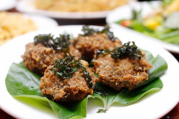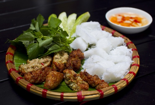 | Chả nhái: Là sản phẩm chắt lọc từ phần thịt ít ỏi của con vật chỉ nhỉnh hơn ngón tay cái một chút, chả nhái có cách làm cầu kỳ, công phu. Bù lại, ai từng thưởng thức chả nhái sẽ không thể quên vị thơm ngon đặc biệt của chả, hương thơm của lá chanh, chua ngọt của nước mắm chấm kèm. Ảnh: Mask |
