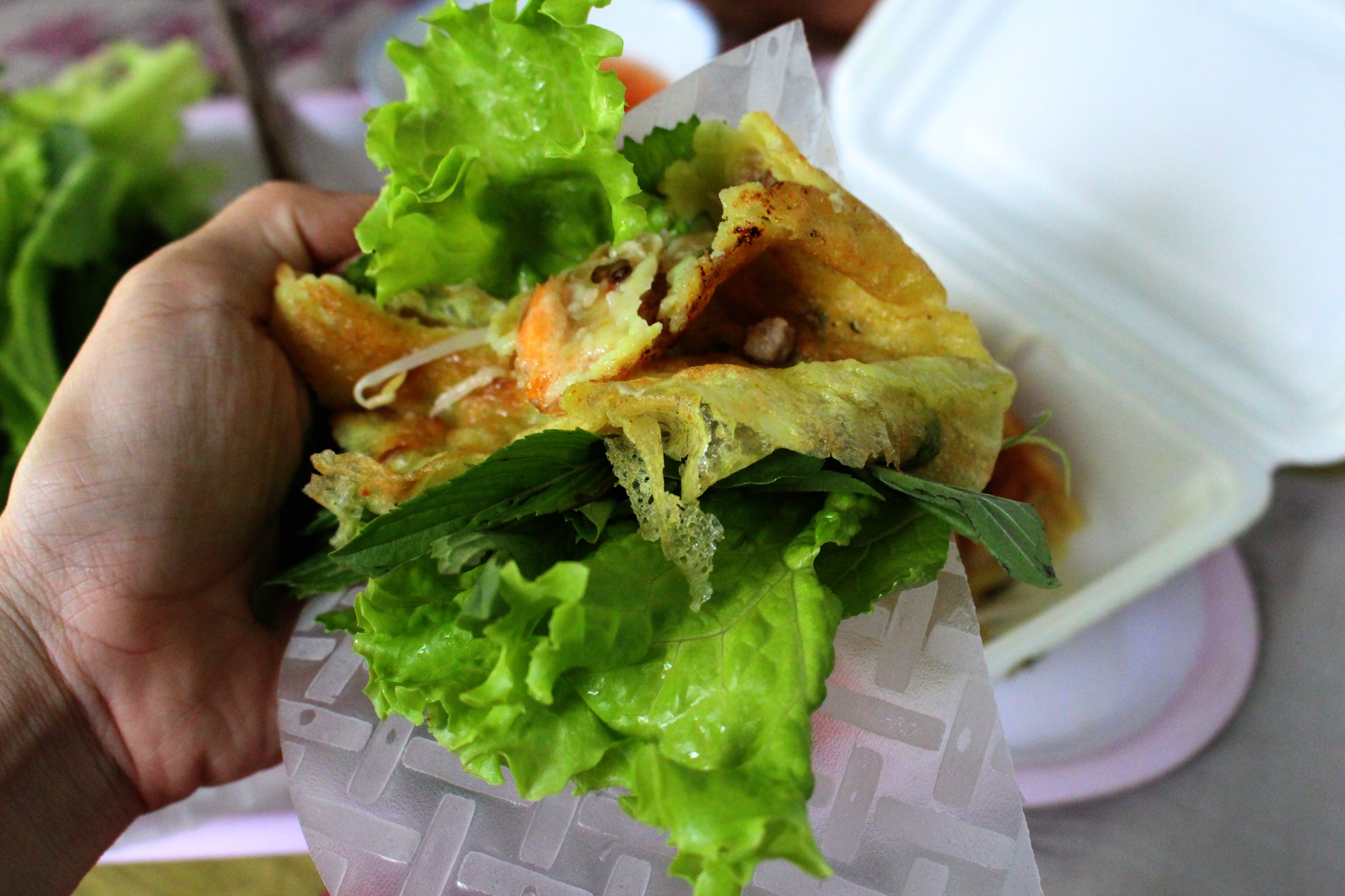 | Bánh xèo có mặt khắp ba miền đất nước hình chữ S. Ở mỗi nơi, món bánh này có kích thước riêng, nước chấm riêng. Tuy vậy, tiếng xèo vang lên khi bột đổ vào khuôn dù ở đâu cũng tạo nên sức hút nhất định. Ảnh: Linh San. |