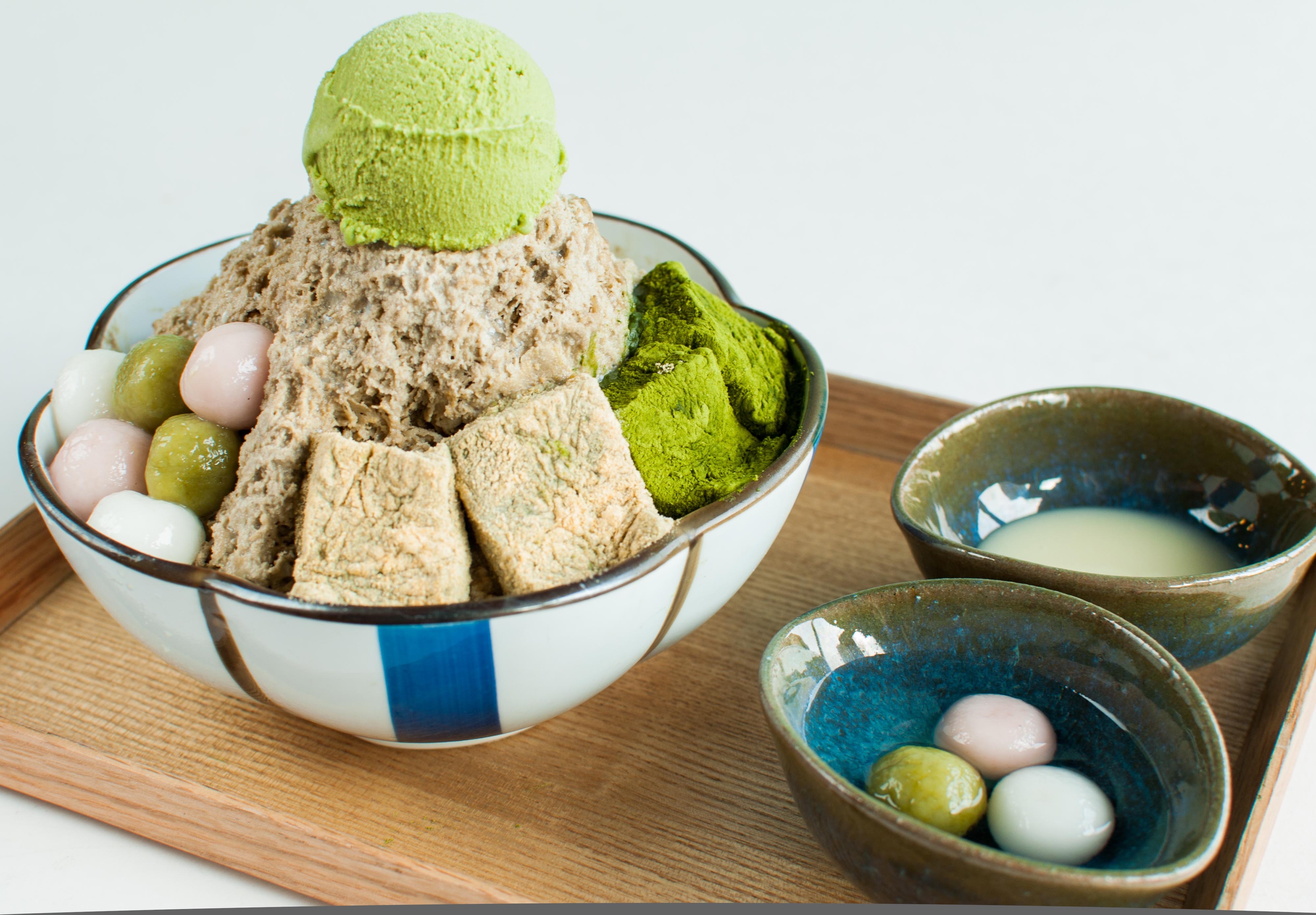 Kinako Warabi Mochi: Đây là món bánh Mochi truyền thống của Nhật được áo lớp bột đậu nành Kinako. Dùng chung với kem mè đen, đậu đỏ và shiratama, món ăn này sẽ tạo nên một hương vị thanh mát khi lạ miệng.