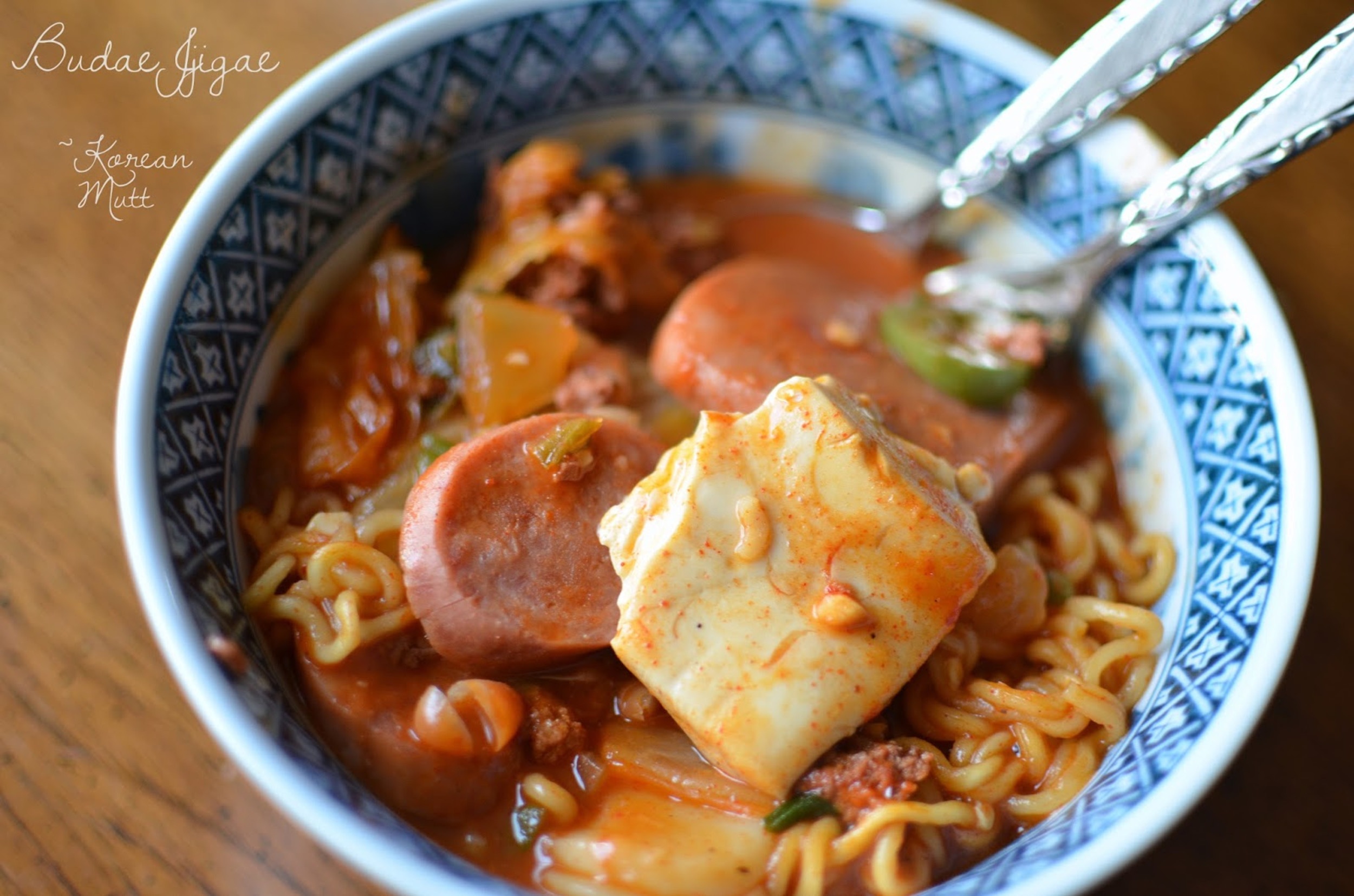 Budae jjigae: Budae jjigae còn có tên gọi khác là món “soup quân đội” hay “canh hầm kiểu quân đội”. Món ăn này trở nên phổ biến sau thời kỳ chiến tranh Hàn Quốc. Món này gồm có mì ramen, kim chi, xúc xích, và thịt hộp. Ảnh: Korean Mutt. |