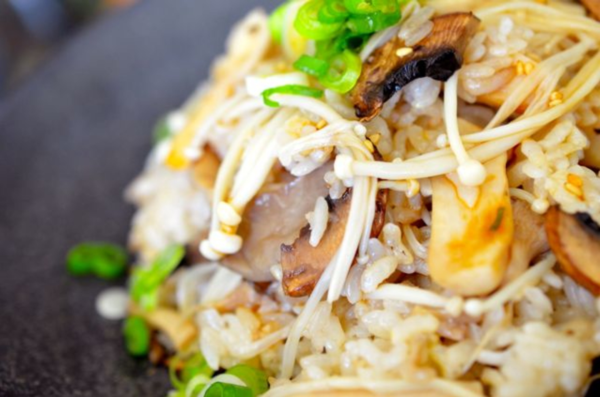 Cơm nấm: Hãy đổi khẩu vị thường ngày bằng món cơm nấm kiểu Hàn Quốc. Nguyên liệu chính là 3 loại gạo (gạo trắng, gạo thơm, gạo lứt) và các loại nấm cùng xốt yangnyeom jang. Ảnh: Kim chimari. |