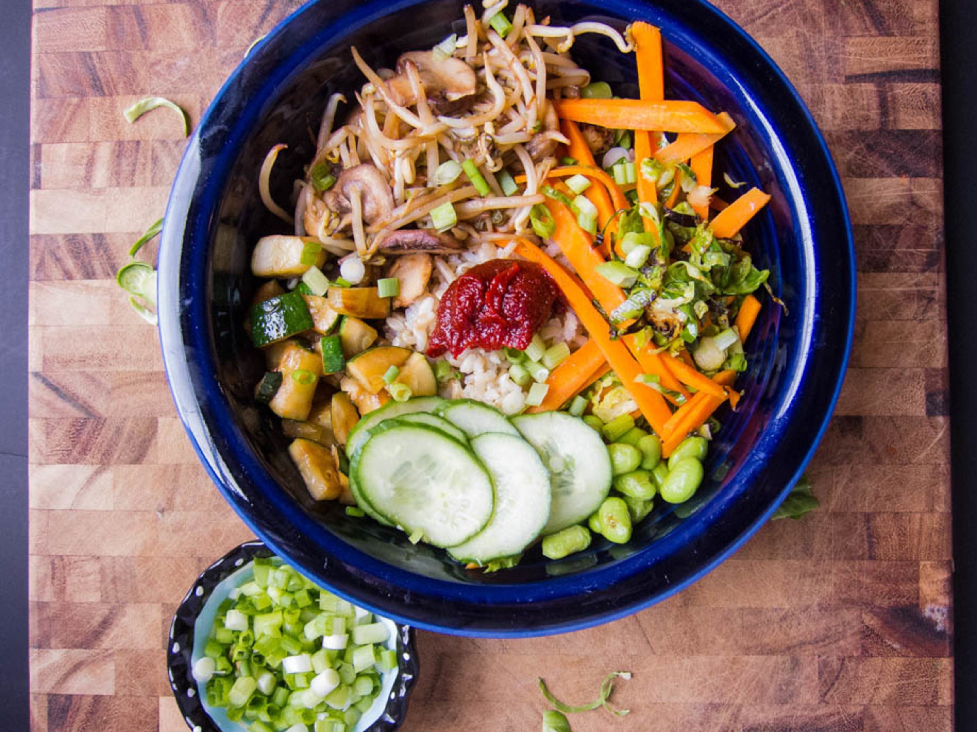 Cơm trộn chay: Tô cơm chộn chay gồm các loại rau củ và nấm xào sẽ mang đến một hương vị mới cho một ngày thanh đạm. Ảnh: Flavor and Flora. |