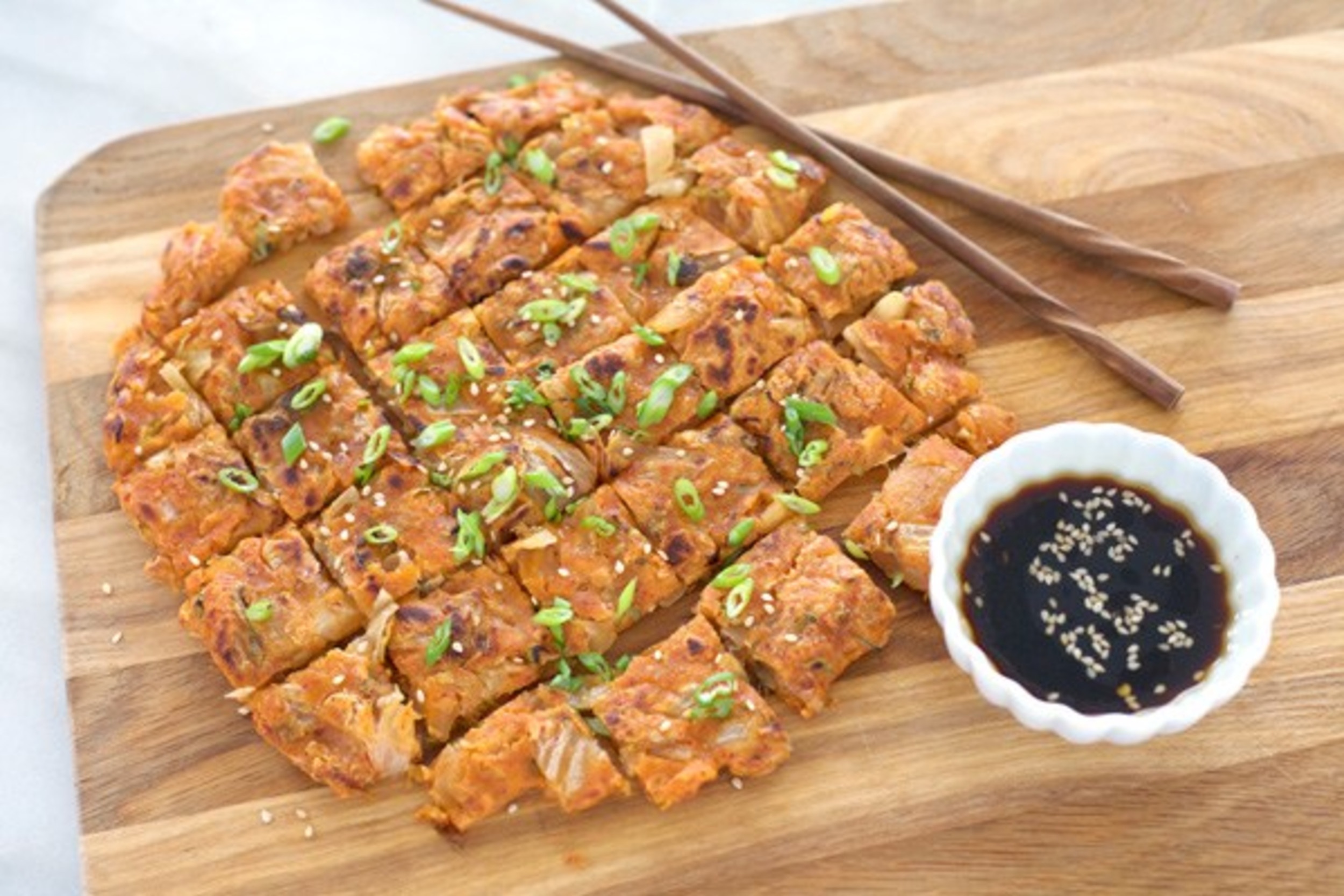 Gamja jeon: Đây là món bánh pancake khoai tây kiểu Hàn. Chỉ cần 3 nguyên liệu đơn giản gồm khoai tây, ớt xanh, hành tây, bạn có thể chế biến một món bánh giòn bên ngoài mà lại mềm bên trong. Ảnh: My Korean Kitchen. |