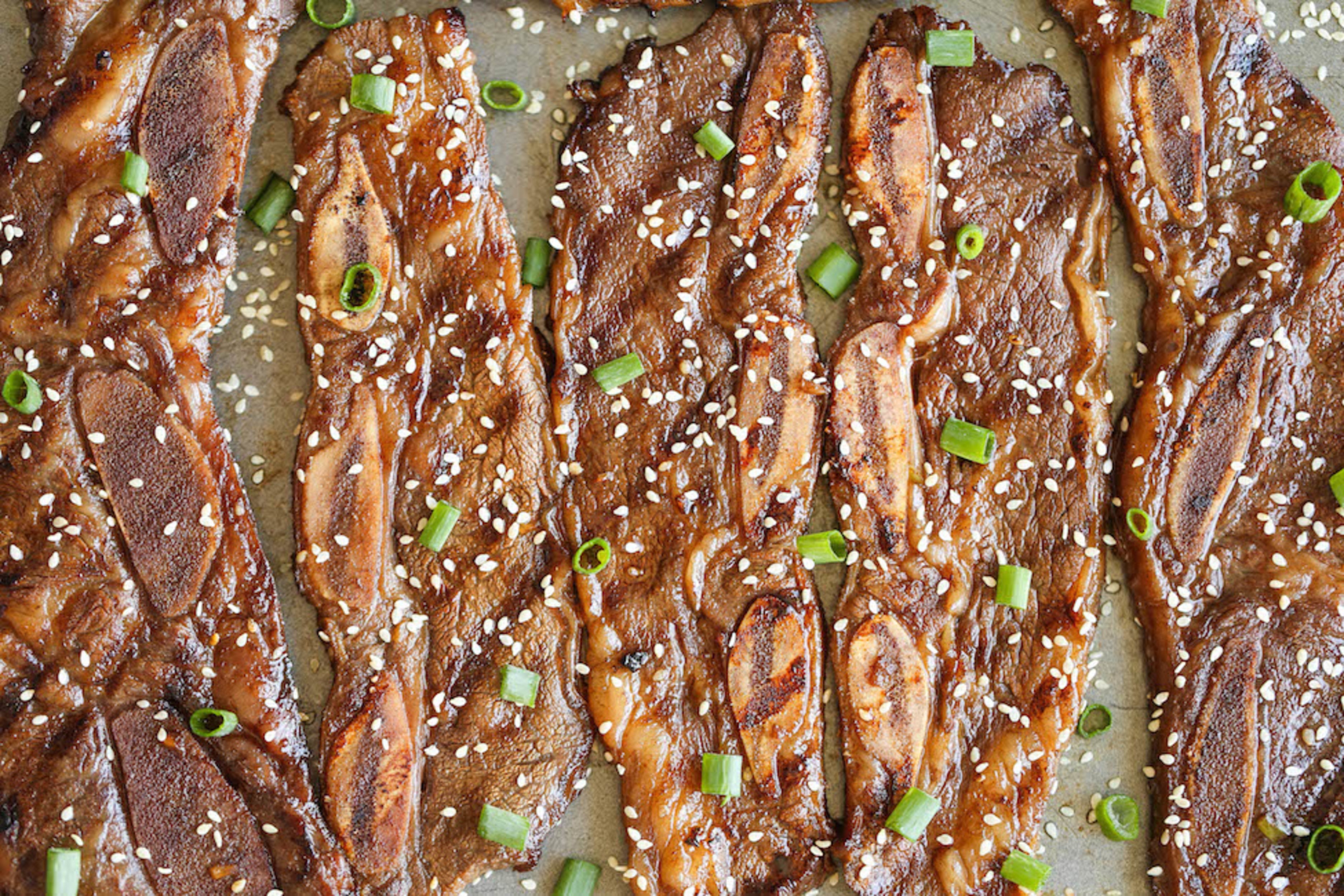 Galbi: Galbi là món thịt sườn bò nướng BBQ. Những miếng thịt nướng to bản được tẩm ướp gia vị mặn ngọt vừa đủ là món ăn yêu thích của người dân Hàn Quốc và những ai yêu thích món Hàn. Ảnh: Damn Delicious. |