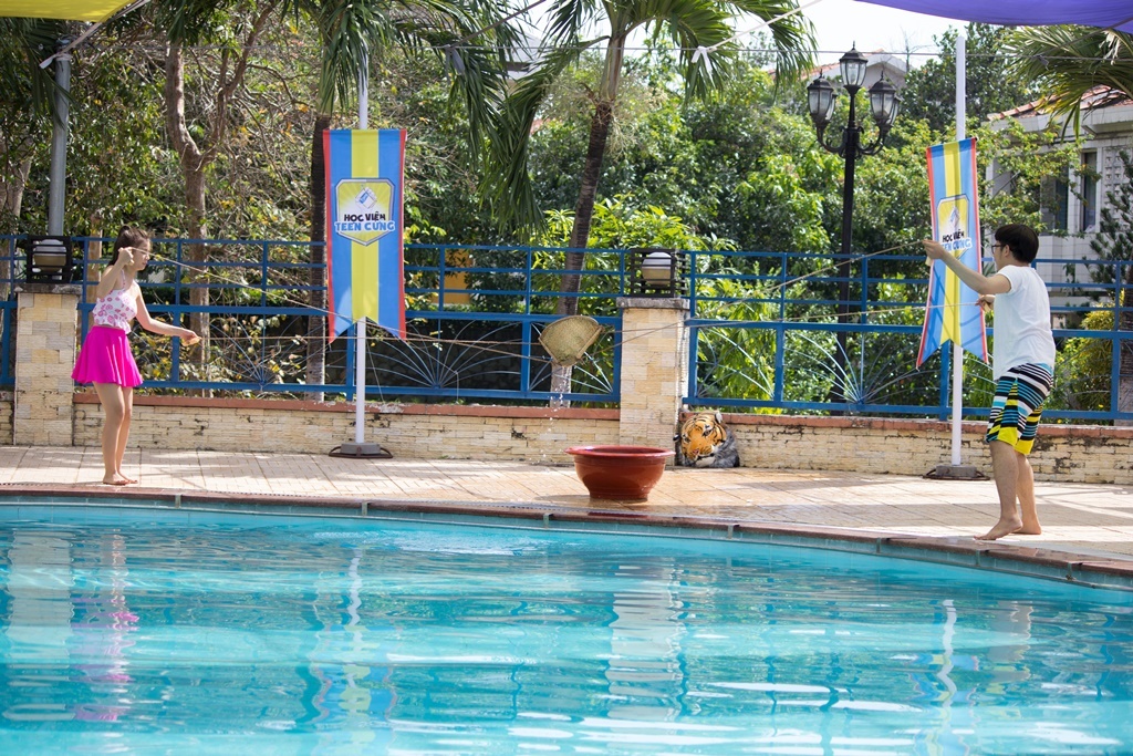 | Kết hợp giữa học thơ ca và tinh thần đồng đội tại hồ bơi. |