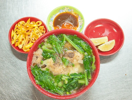 Mì sủi cảo Hà Tôn Quyền: Con đường nhỏ trong Chợ Lớn có lẽ đã định danh với món mì sủi cảo. Món ăn tại đây có hai điểm nhấn. Một là miếng mực khô được ngâm, tẩm có độ nở, mềm, sần sật. Hai là nước lèo trong vắt loáng lớp béo mỏng ngọt lịm, thơm lừng.