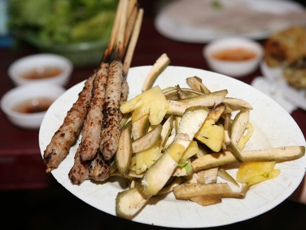 | Quán bánh xèo nem lụi đắt khách ở đầu ngõ 167 Đội Cấn. |
