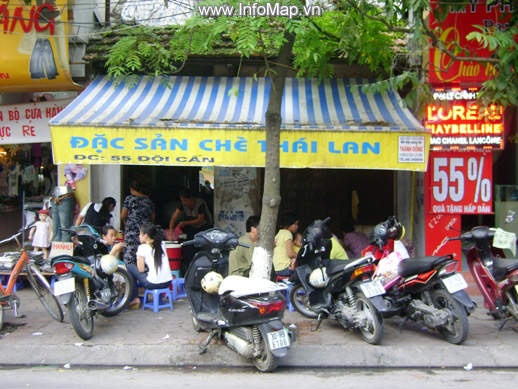 Quán chè này khá nổi tiếng, nằm ở đoạn đầu phố Đội Cấn gần chợ Ngọc Hà. Quán đã có thâm niên hàng chục năm, mở từ thời mà chè Thái Lan vẫn là khái niệm mới mẻ, lạ lẫm với dân Hà Thành. Hồi đó, nhiều người chưa biết, còn tự đặt tên cho món chè nơi đây là “chè giun” hay “chè sâu” bởi những sợi trắng mềm dẻo, dai dai hay sợi xanh béo tròn, vui miệng.