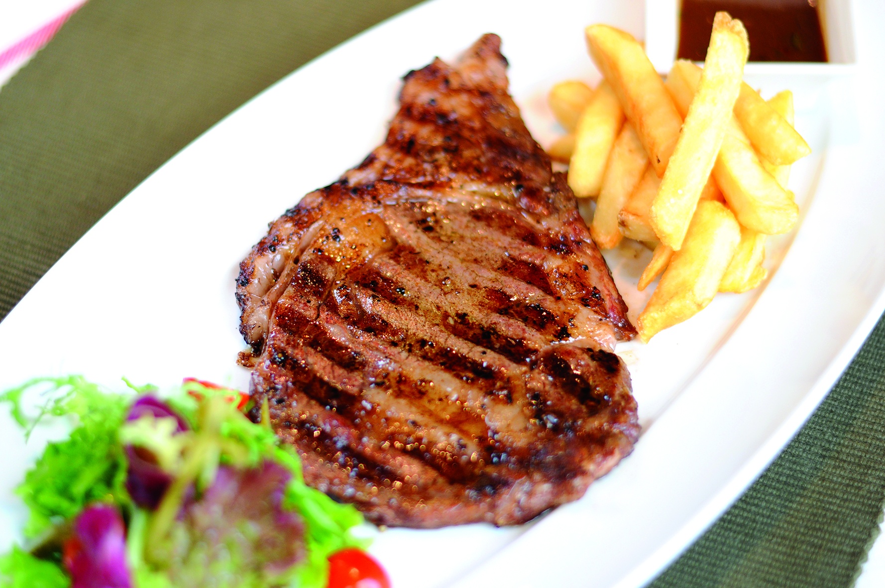 | Steaking a Knockout: Thịt thăn bò được tẩm ướp đậm đà nướng chín hành và sốt nấm. Ăn kèm rau củ và khoai tây chiên. |