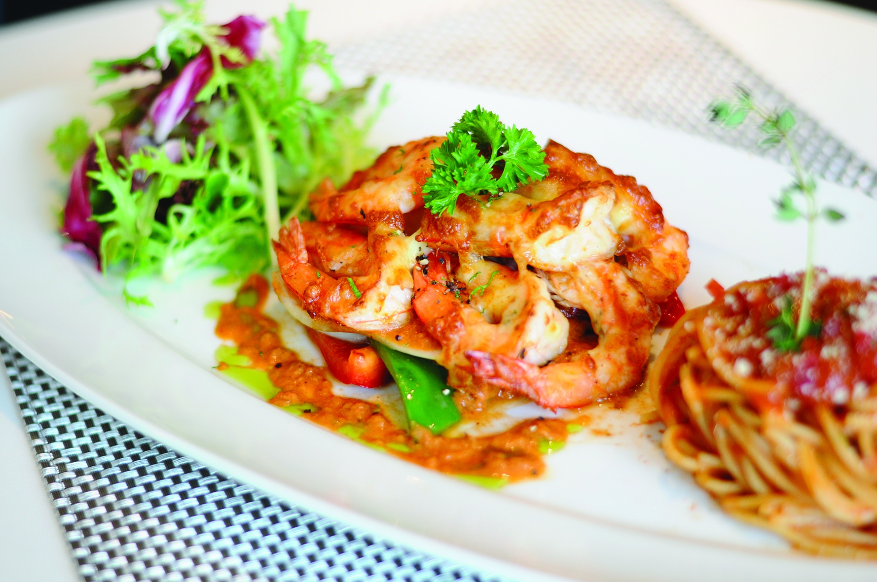 | The prawn who got creamed: Tôm tươi được xào với sốt kem, sau đó phủ đều lên mì ống. Bạn có thể yêu cầu đổi qua sốt cà chua theo ý thích. |
