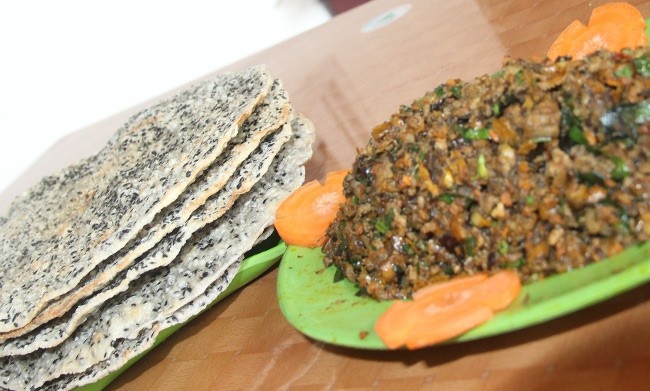 | Bánh đa ăn kèm với lươn bằm có vị ngon hòa quyện giữa vị thơm bùi của bánh và vị béo ngậy của lươn |