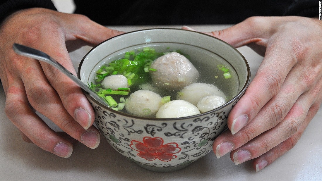 Súp thịt viên khổng lồ: Loại thịt viên ngon nhất là thịt lợn được giã tay bằng một chiếc búa gỗ cho tới khi nhuyễn. Thịt viên ở chợ đêm Ningxia to bằng nắm tay em bé. Những lỗ khí bên trong khiến viên thịt ngấm nhiều nước dùng và hương vị trong quá trình nấu. |
