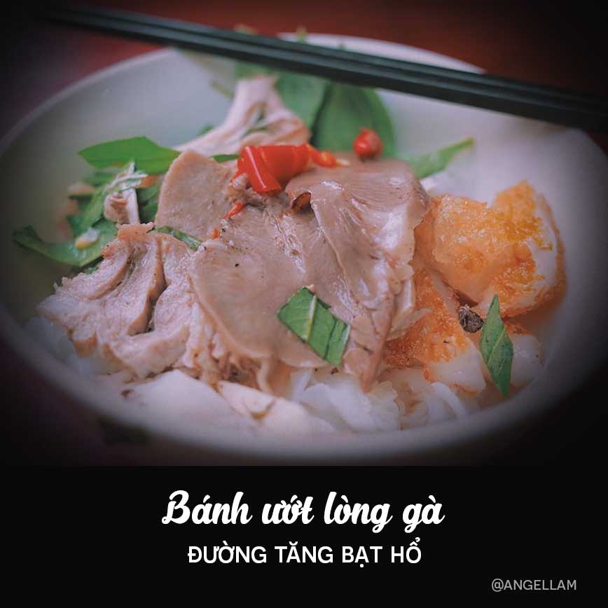 Bánh ướt lòng gà cũng không phải là một món ăn xa lạ, nhưng ở đây hương vị món ăn lại được pha trộn rất đặc biệt. Nước sốt được pha chế theo công thức riêng. Nguyên liệu từ bánh đến lòng gà... đều được chọn lựa kỹ lưỡng. |