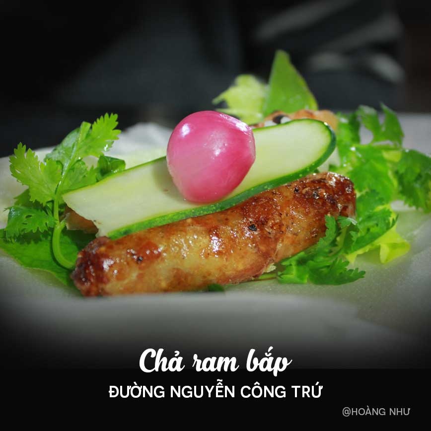 Chả răm bắp được làm khá công phu. Bánh tráng mỏng, bên trong là bắp non quết nhuyễn, hành tím băm, nêm gia vị, tiêu xay... chiên giòn, vàng ruộm. Vị bắp non trong nhân thường rất ngọt và thơm, tạo cho cuốn chả bắp có hương vị hấp dẫn lạ. |