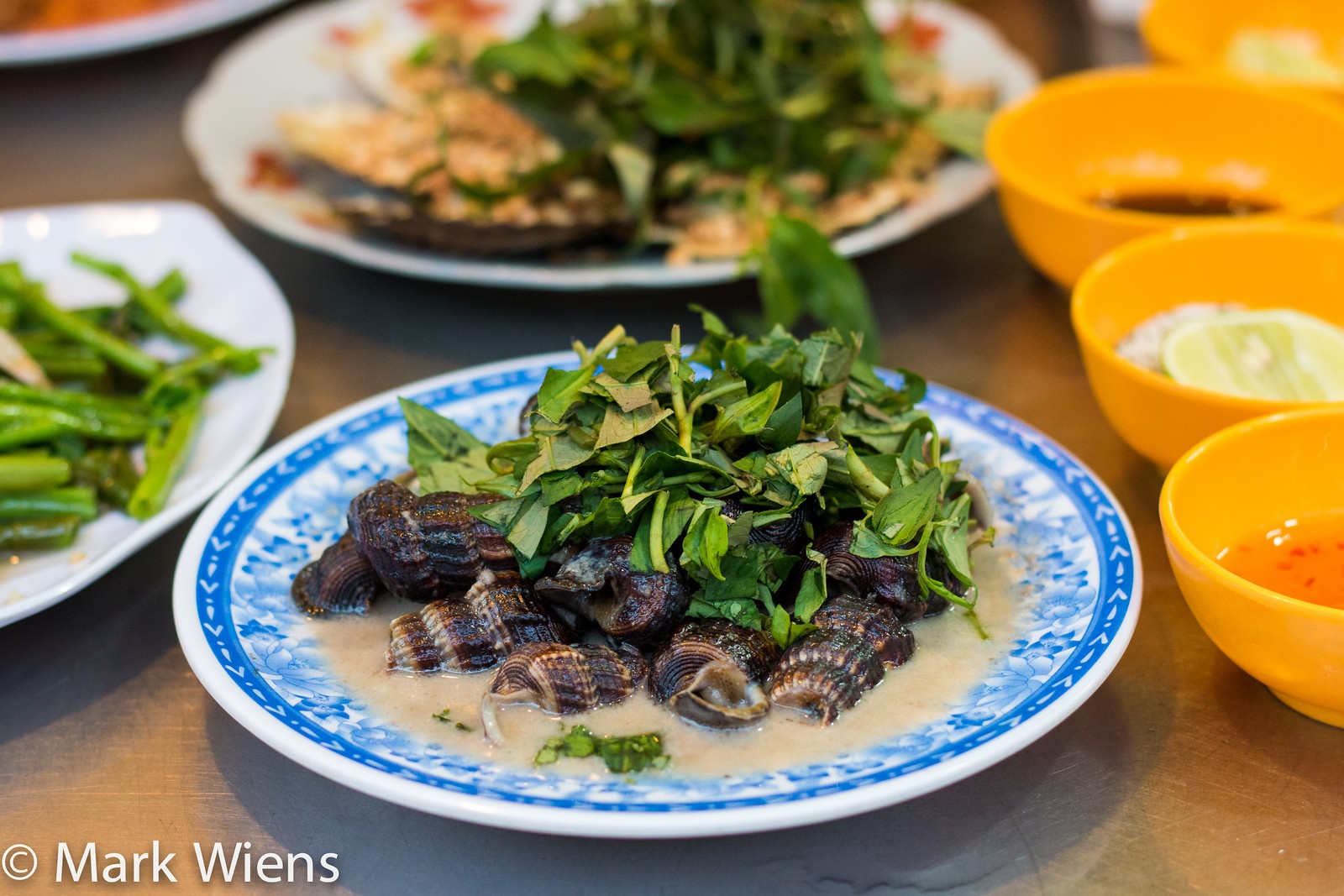 Các quán ốc không chỉ phục vụ đủ loại ốc biển, ốc nước ngọt được chế biến nhiều kiểu mà còn có các loại hải sản khác như sò huyết, ngao, tôm, cua... |