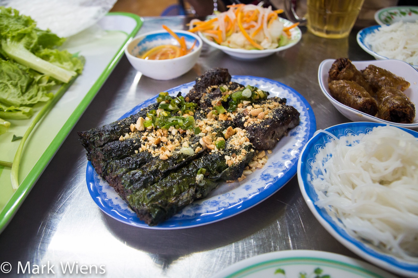 Thịt bò nướng lá lốt: Thịt bò được ướp gia vị, cuộn trong lá lốt và nướng trên than hoa, tạo ra hương thơm khó lòng từ chối. |