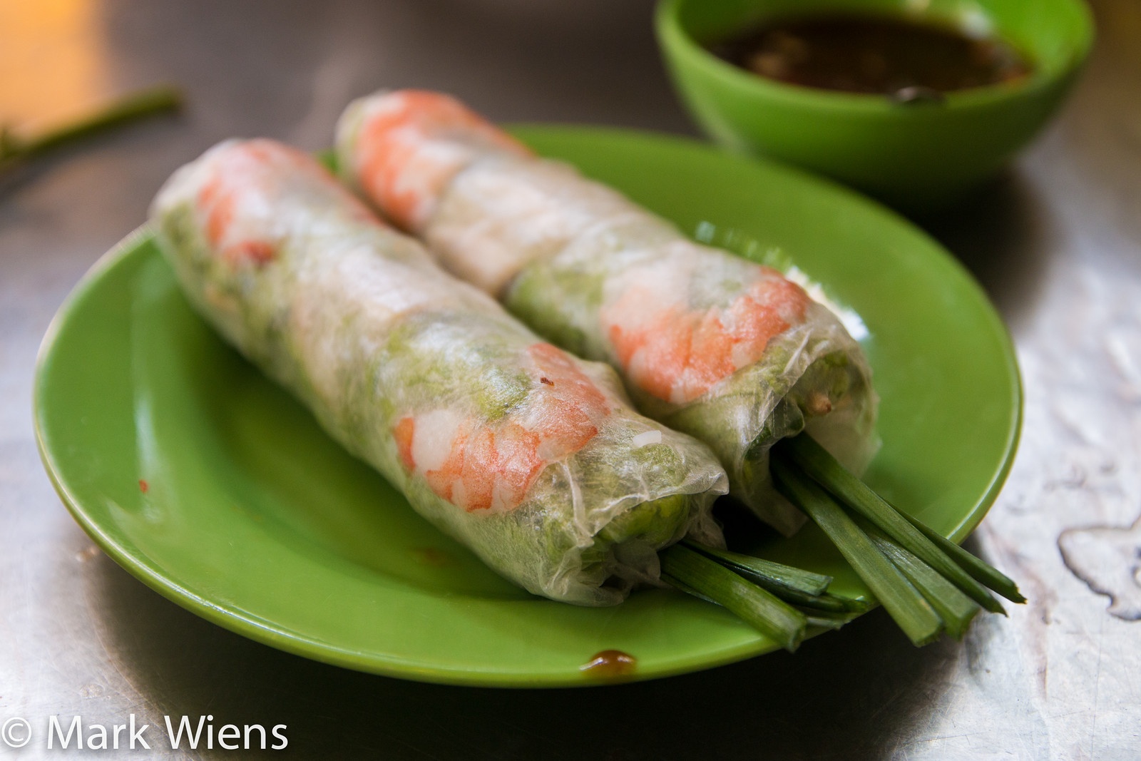 Gỏi cuốn: Món ăn thanh nhã này gồm bánh tráng cuộn với bún, thịt, tôm, rau thơm và lá hẹ, chấm với nước mắm nhạt. Bạn có thể ăn nhiều mà không thấy chán, bởi sự cân bằng và hài hòa giữa các loại nguyên liệu trong gỏi cuốn. |