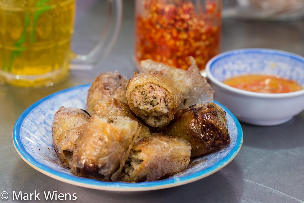 Chả giò (nem): Lớp vỏ giòn tan bọc ngoài phần nhân nóng hổi làm từ thịt băm, hành, mộc nhĩ... là món ăn lý tưởng cho những ngày mát mẻ. |