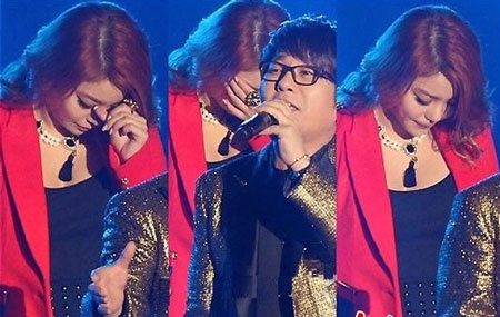 | Ailee không cầm được nước mắt trên sân khấu. |