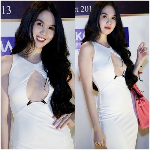 | Người đẹp Ngọc Anh cũng chọn mốt cắt xẻ táo bạo, đường cắt khá cao tại chân váy dễ dàng đẩy người đẹp rơi vào tình huống lộ nội y. Tuy nhiên, cô khá thận trọng bằng cách lấy tay cầm clutch che chắn khéo léo điểm hở khi di chuyển. |