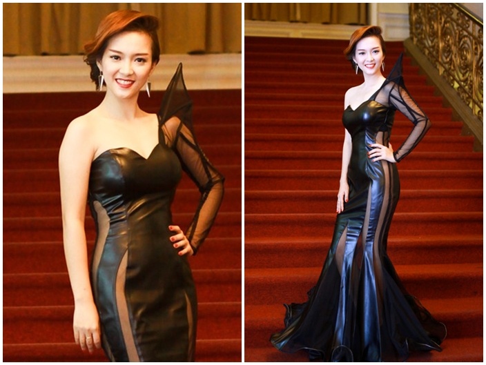 Hoa hậu Đông Nam Á - Diệu Hân cũng từng sở hữu một bộ cánh ấn tượng với đường cắt mạnh mẽ tại thân váy. Đường xẻ này được kết nối với những sợi dây đan xen để người mặc có thể tùy ý chọn lựa độ hở táo bạo hay vừa phải. Diệu Hân biết tiết chế khi cô chọn cách phô diễn cơ thể ở mức an toàn.