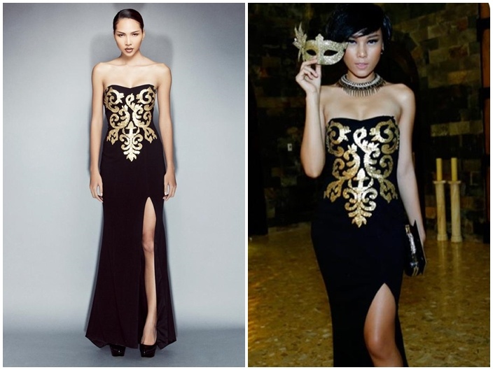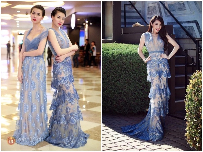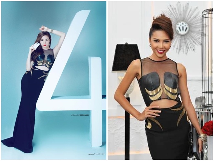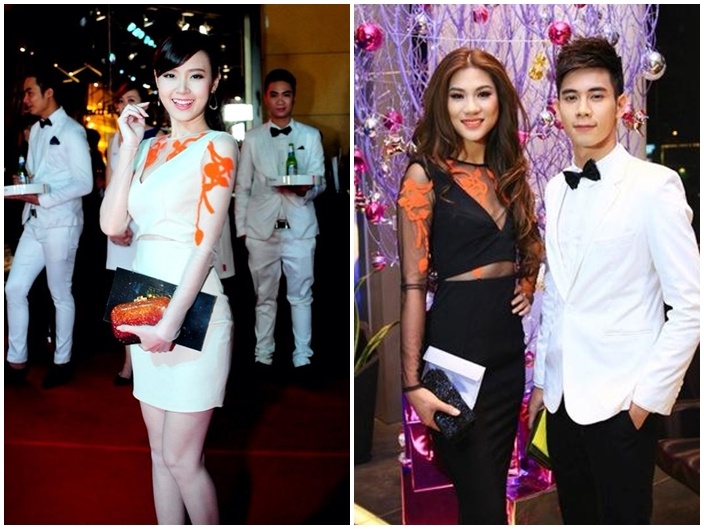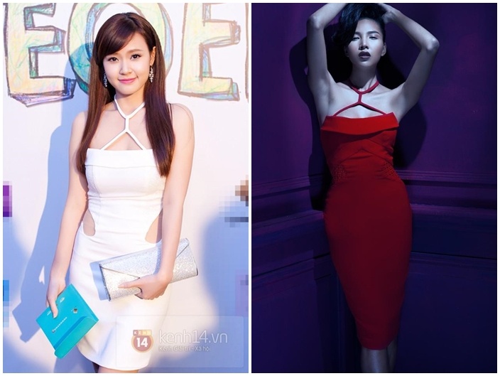 Diễn viên Midu và người mẫu Kim Dung cũng từng ''đụng hàng'' khi cả hai chọn thiết kế của Kim Khanh. Trong khi Midu chọn gam màu trắng hợp hình ảnh trong sáng thì Kim Dung ấn tượng hơn với tông màu đen huyền bí.