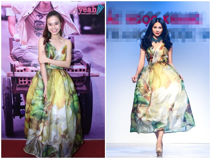 Ngày 12/3, trong buổi ra mắt phim Vừa đi vừa khóc, Ninh Khương Lan Ngọc thu hút sự chú ý của truyền thông nhờ bộ váy in hoa đẹp mắt, thiết kế bồng xòe phù hợp với hình ảnh nữ tính. Thế nhưng, trước đó một hôm, Thanh Hằng trình diễn mẫu váy này trên sàn diễn Thời trang & Cuộc sống.