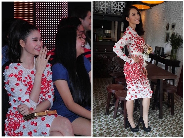 Mới đây, Trương Nhi diện mẫu váy kết hoa cầu kỳ của Lê Thanh Hòa khi có buổi gặp gỡ bạn bè, cô khá hài lòng với mẫu váy hợp vóc dáng. Nữ diễn viên không hay biết, cách đó hai tuần, Trương Quỳnh Anh cũng đã diện một chiếc tương tự. Bà mẹ một con mặc trong dịp tham dự Bước nhảy hoàn vũ để cổ vũ chồng.