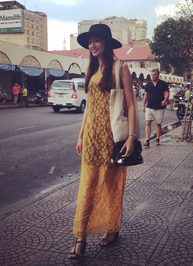 | Người mẫu Trà Ngọc Hằng phong cách khi diện váy tông vàng, chất liệu thun co giãn, tiện lợi trong những ngày hè nóng bức. |