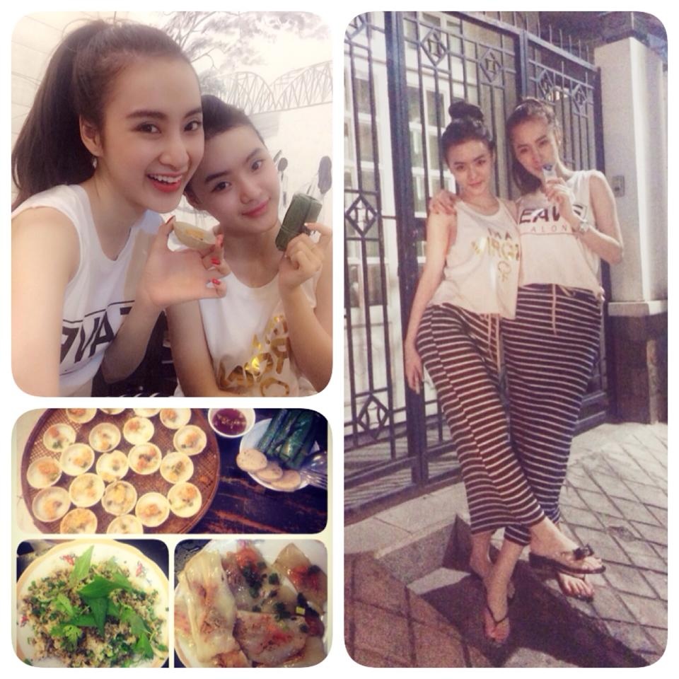 | Một ngày khác, nữ người mẫu mặc trang phục đồng bộ với em gái khi cả hai xuống phố ''ăn hàng''. |