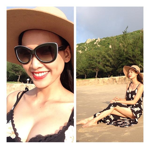 | Trong dịp đi biển xả stress, hoa hậu diện mốt trang phục váy ngủ khi dạo phố. Trang phục in hoa nữ tính góp phần giúp hình ảnh người mặc quyến rũ và tinh tế hơn |