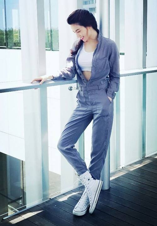 Trên trang cá nhân, Hà Hồ chia sẻ hình ảnh trước khi bước vào phòng tập. ''Nữ hoàng giải trí'' diện bộ jumpsuit denim hiện đại, áo thun năng động bên trong, mái tóc được tết gọn gàng.