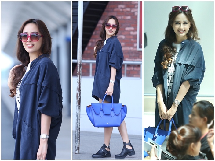 Mai Phương Thúy nổi bật ở sân bay với trang phục áo thụng giấu quần. Gu thời trang đường phố của hoa hậu thêm phần cá tính với đôi giày đế bệt, mái tóc thả tự nhiên. Gương mặt nổi bật nhờ tông trang điểm nhẹ nhàng.