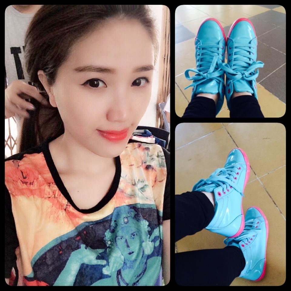 Bảo Thy khoe chiếc áo thun in hình lạ mắt, kèm đôi giày bata da bóng hiện đại.