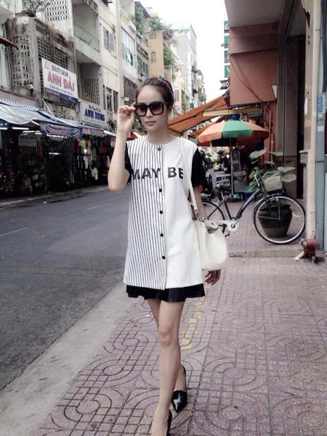 Tuần qua, hot girl Sella Trương ghi lại những hình ảnh khi đi dạo trên con phố gần nhà. Trong ảnh, nữ người mẫu diện trang phục trẻ trung, cá tính như áo thun dáng suôn, sọc kẻ, in chữ.