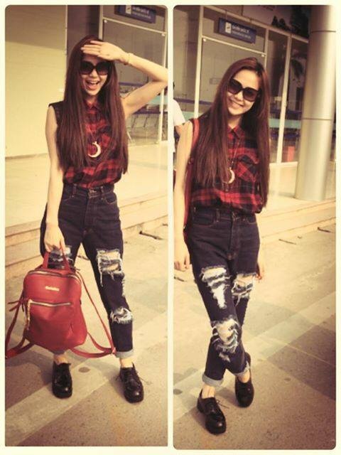 Đối lập với hình ảnh lộng lẫy trên sân khấu, giọng ca Sắc môi em hồng chuộng phong cách năng động với phong cách phủi bụi khi có dịp ra phố. Tuần qua, nữ ca sĩ diện quần jeans rách cá tính, kết hợp cùng áo sơ-mi ca-rô. Phụ kiện dây đeo hình mặt trăng nghịch ngợm.