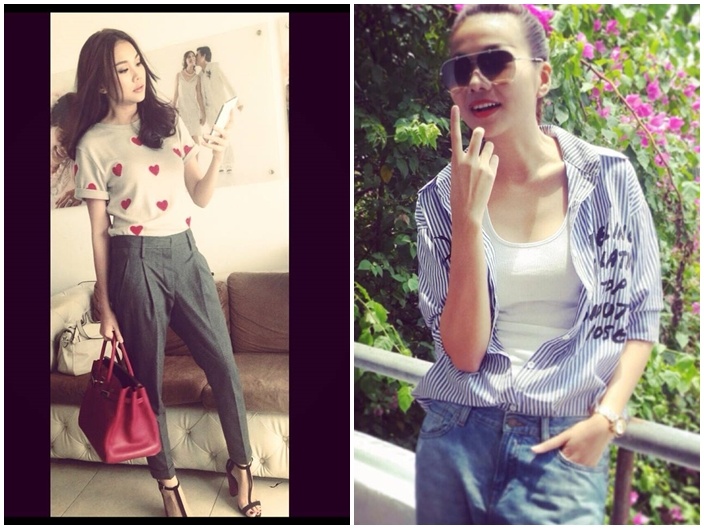 Một ngày khác nữ giám khảo Vietnam's Next Top Model 2013 trẻ trung với áo thun, quần jeans, quần âu cá tính.