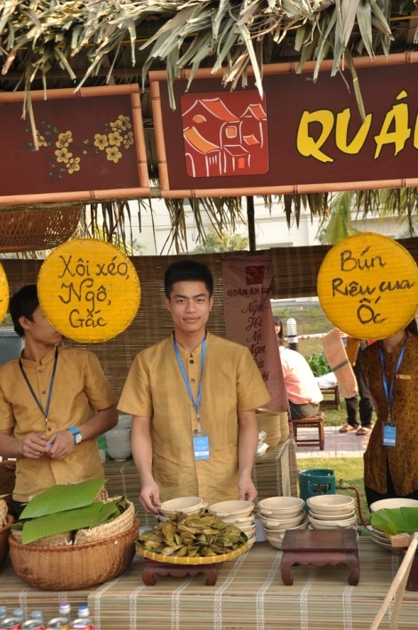 Dưới bàn tay phục dựng đầy tài năng và tâm huyết của nghệ nhân ẩm thực Nguyễn Phương Hải, quầy hàng Tết, quán nước hiện lên thật sống động và cuốn hút. Những người của thế hệ trước đứng trước cảnh đó như được trở lại với cái dân dã mà đầy sức hút của những chõng tre, ấm tích, trầu têm cánh phượng.