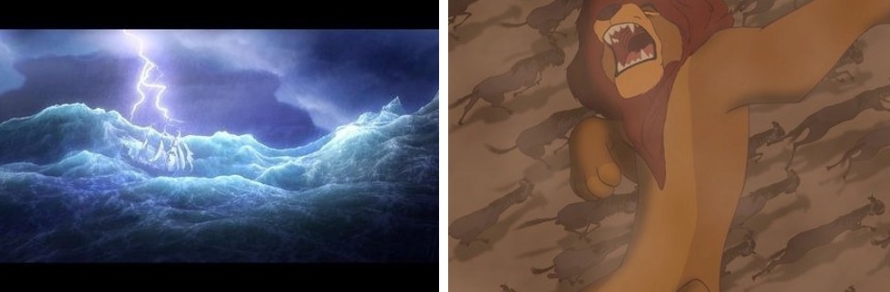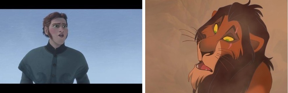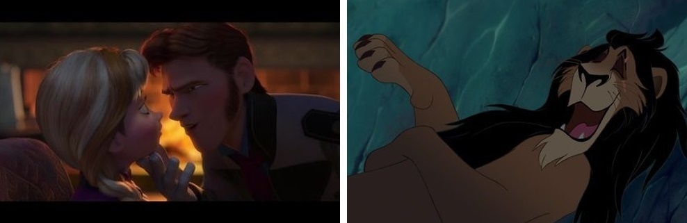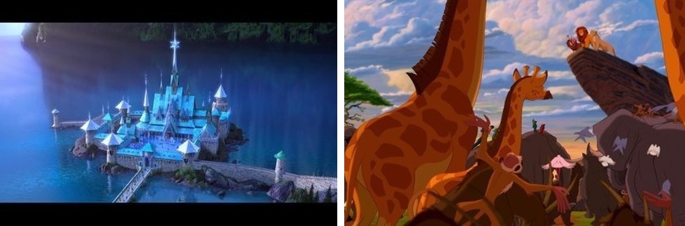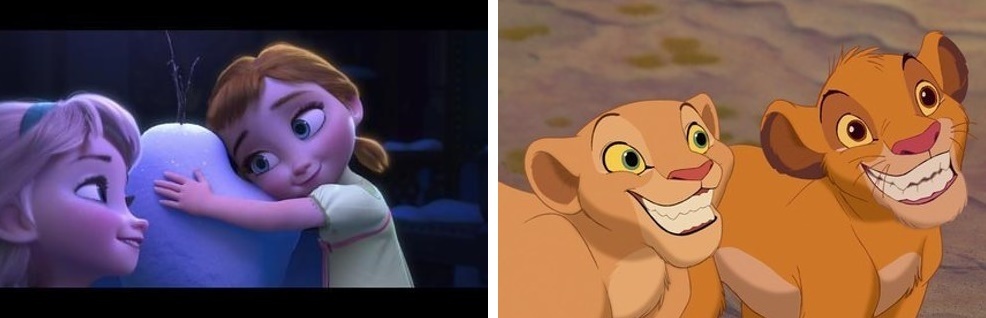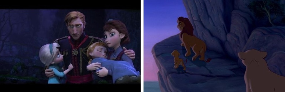 | Cả hai đều được mở đầu bằng một khúc hát dân ca. Với Frozen là ca khúc Frozen’s Heart cùng âm điệu của dân ca Saami. Còn Circle of Life trong The Lion King lại tấu lên âm điệu Zulu của vùng Hawaii. |
