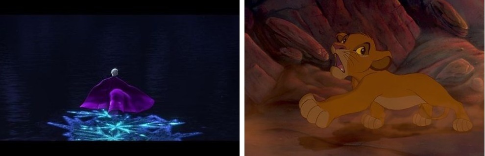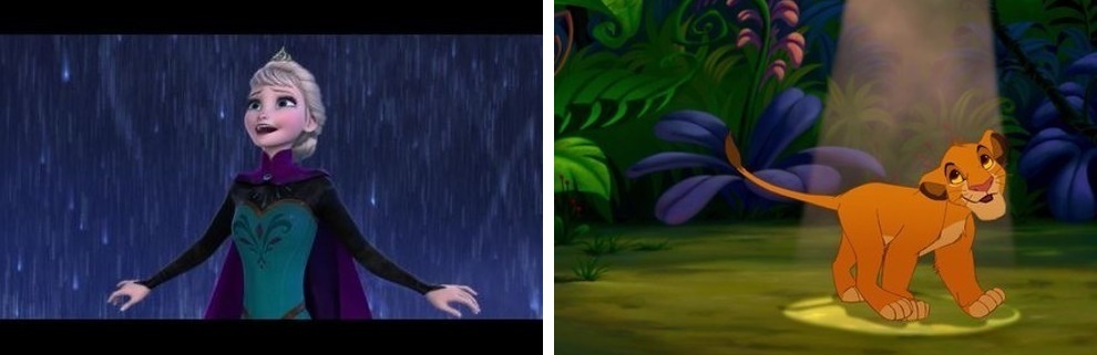 | Trên chuyến hành trình đầy chông gai, họ đều cất lên những ca khúc ca ngợi tự do. Với Elsa là Let It Go, còn với Simba là Hakuna Matata. |