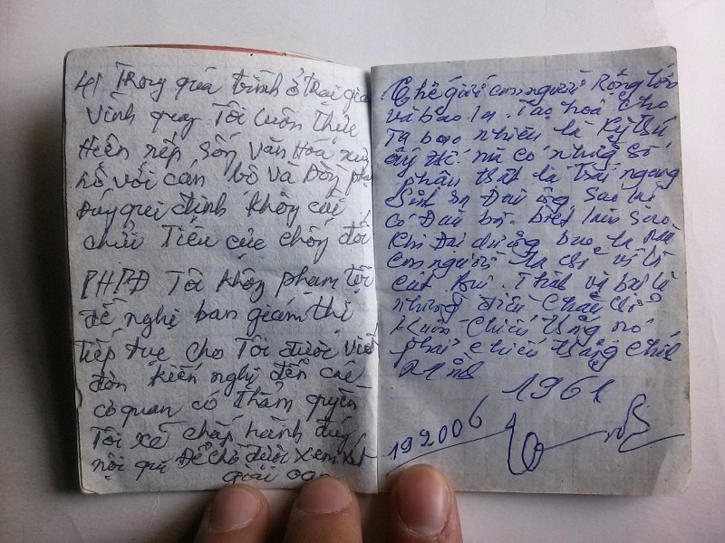 | Cuốn số nhật kí ngồi tù của ông Chấn. |